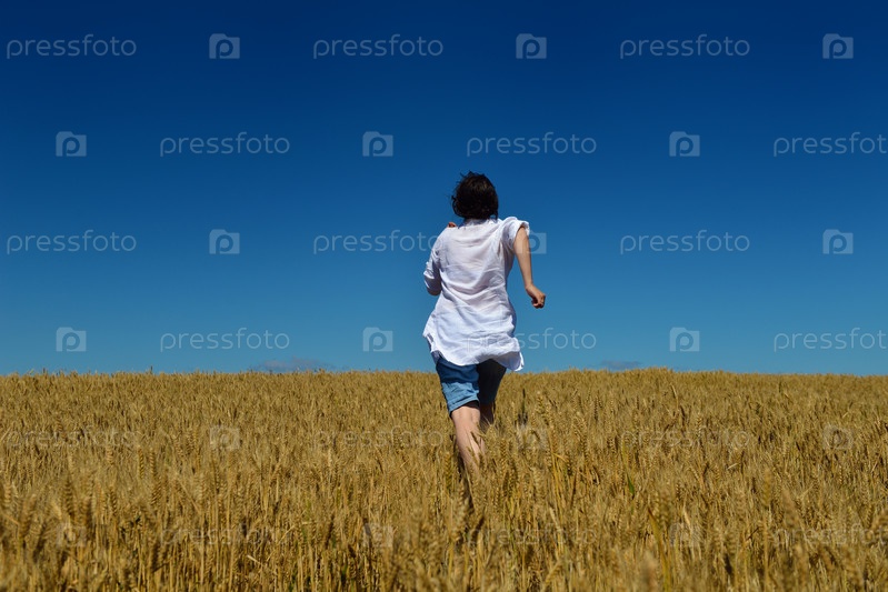 Молодая женщина на пшеничном поле летом