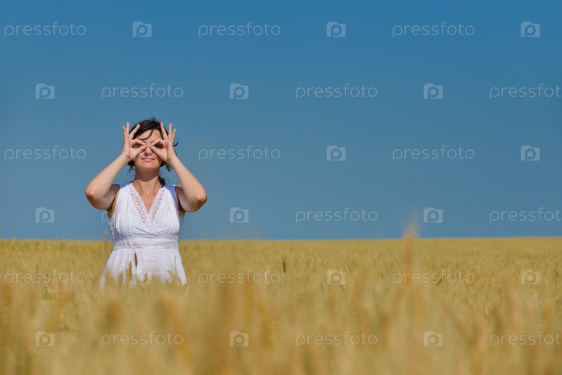 Молодая женщина на пшеничном поле летом