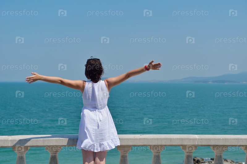 Счастливая молодая женщина с поднятыми руками