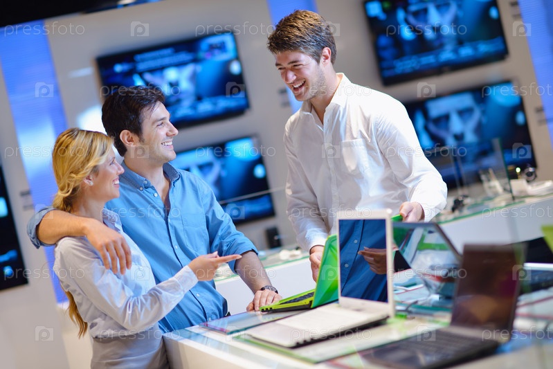 Люди делают покупки в магазине электроники