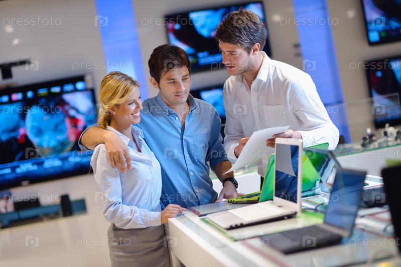 Люди делают покупки в магазине электроники