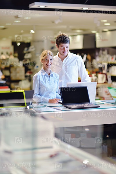 Люди делают покупки в магазине электроники