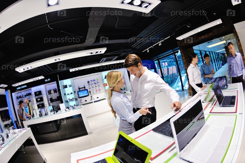Люди совершают покупки в магазине электроники