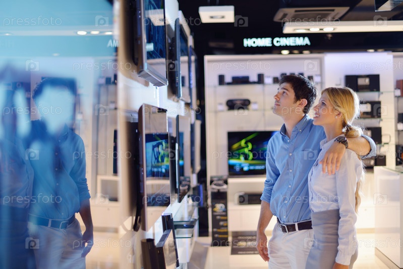 Люди делают покупки в магазине потребительской электроники