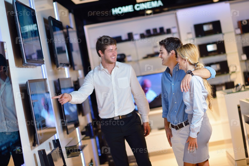 Люди делают покупки в магазине потребительской электроники