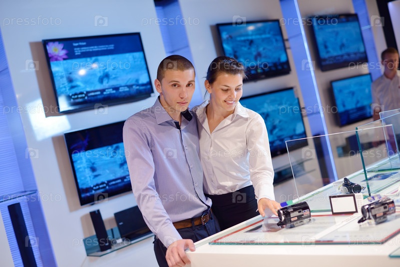 Люди совершают покупки в магазине электроники