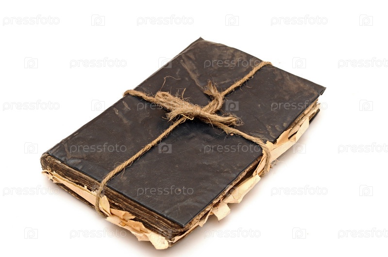 Старая книга, перевязанная веревкой, на белом фоне