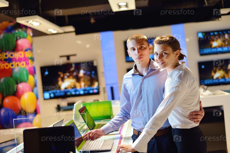 Люди делают покупки в магазине потребительской электроники