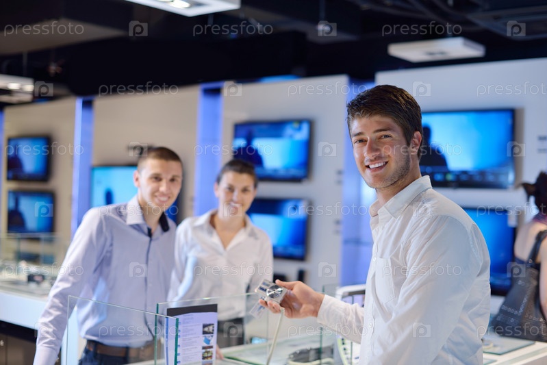 Люди делают покупки в магазине потребительской электроники
