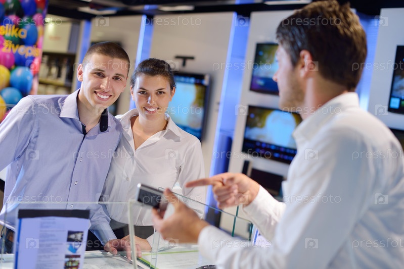 Люди совершают покупки в магазине электроники
