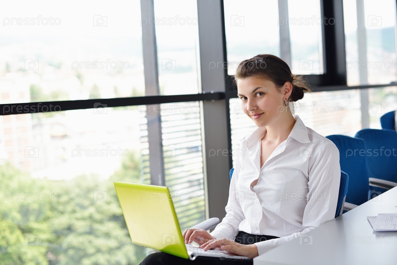Молодая красивая бизнес-леди с ноутбуком в офисе