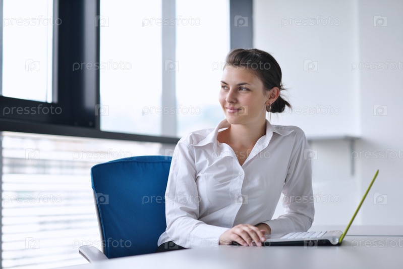 Молодая красивая бизнес-леди с ноутбуком в офисе