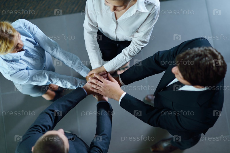 Бизнес-команда стоит, соединив руки