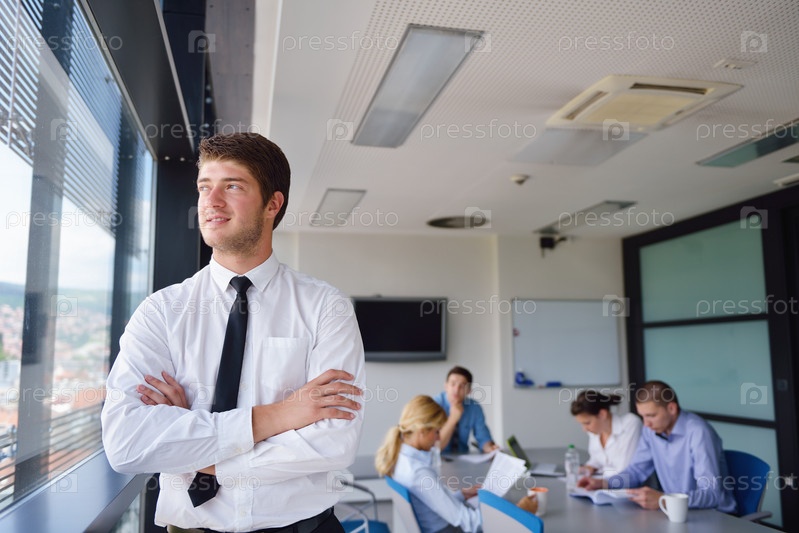 Деловой человек на встрече с коллегами в офисе