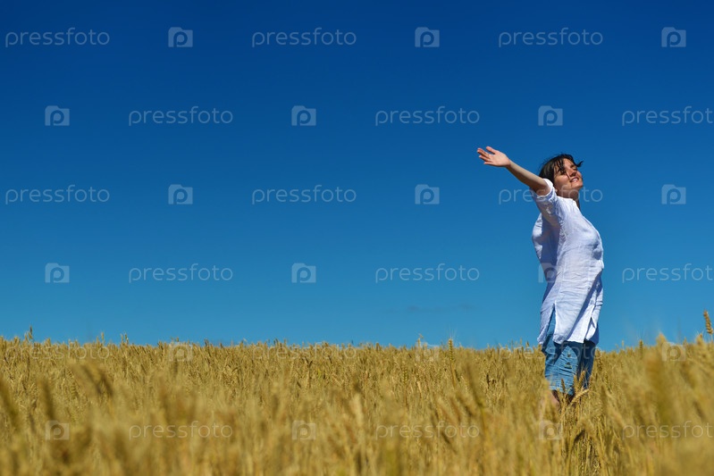 Молодая женщина в поле пшеницы летом