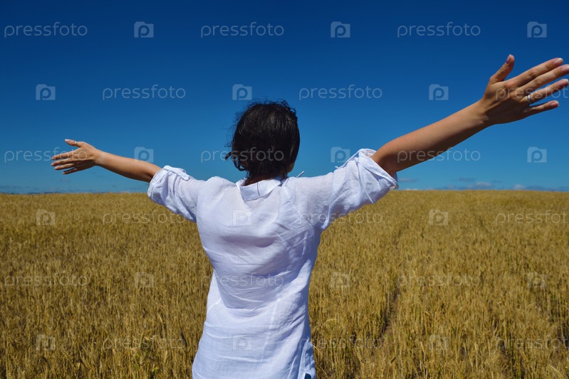 Молодая женщина в поле пшеницы летом