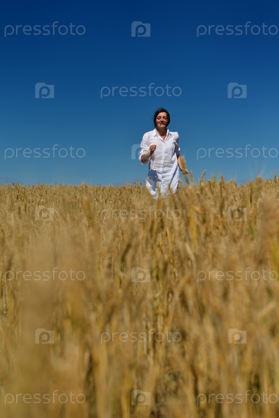 Молодая женщина в поле пшеницы летом