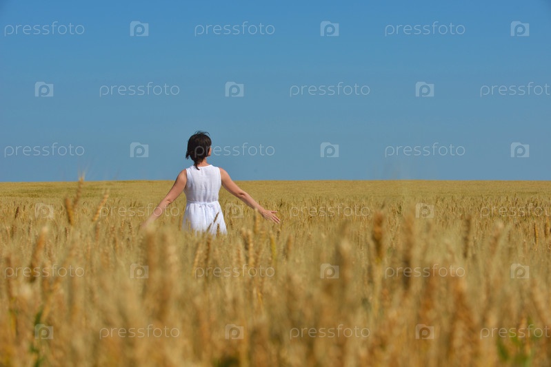 Молодая женщина в поле пшеницы летом