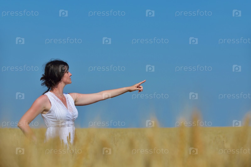 Молодая женщина в поле пшеницы летом