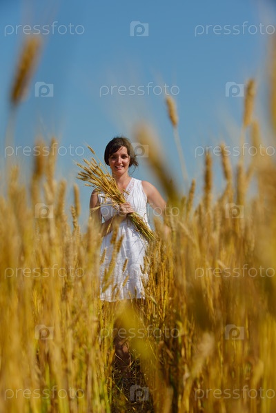Молодая женщина в поле пшеницы летом