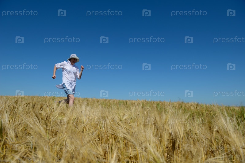 Молодая женщина на летнем пшеничном поле