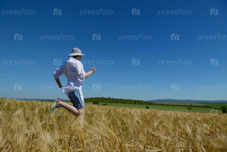 Молодая женщина на летнем пшеничном поле