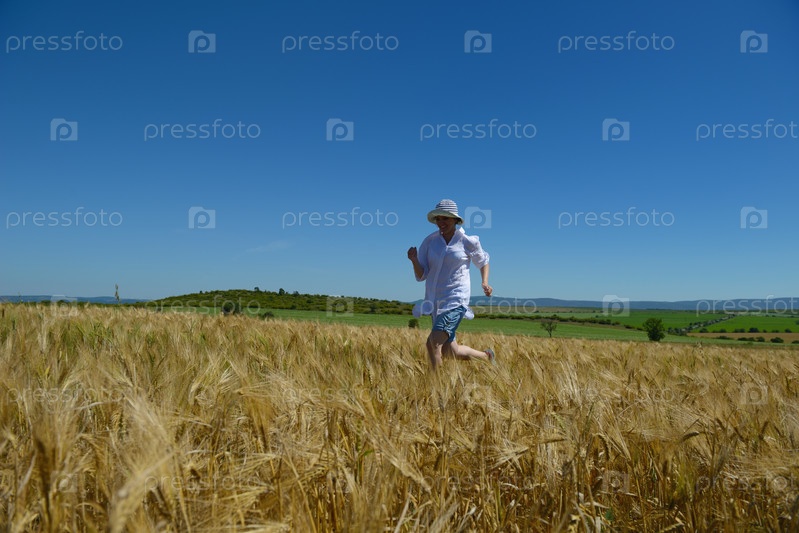 Молодая женщина на летнем пшеничном поле