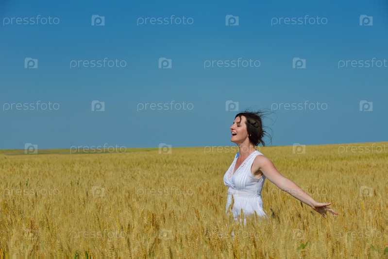 Молодая женщина на летнем пшеничном поле