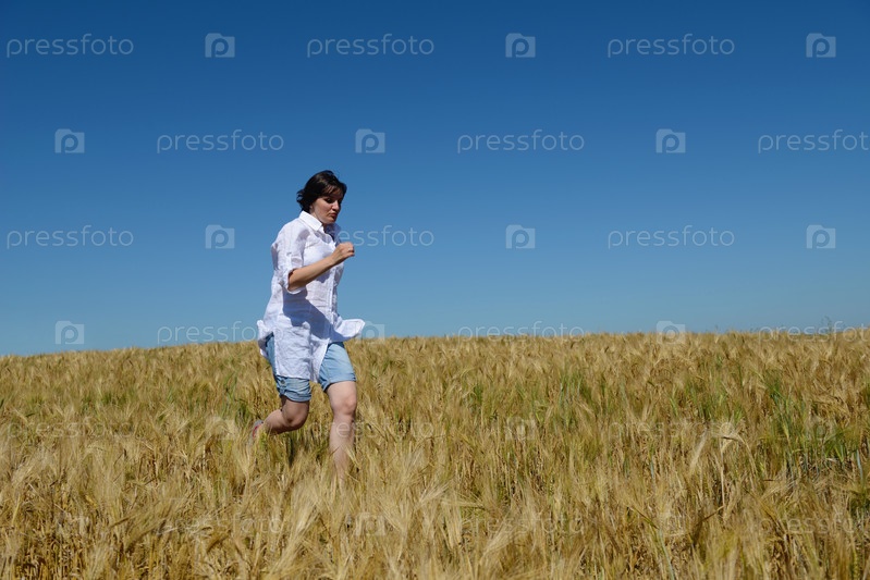 Молодая женщина на летнем пшеничном поле