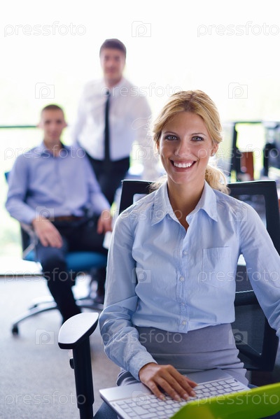 Бизнес-леди с сотрудниками в офисе