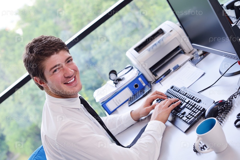 Счастливый молодой деловой мужчина в офисе