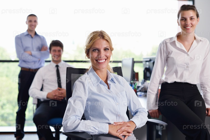 Бизнес-леди и ее сотрудники в офисе