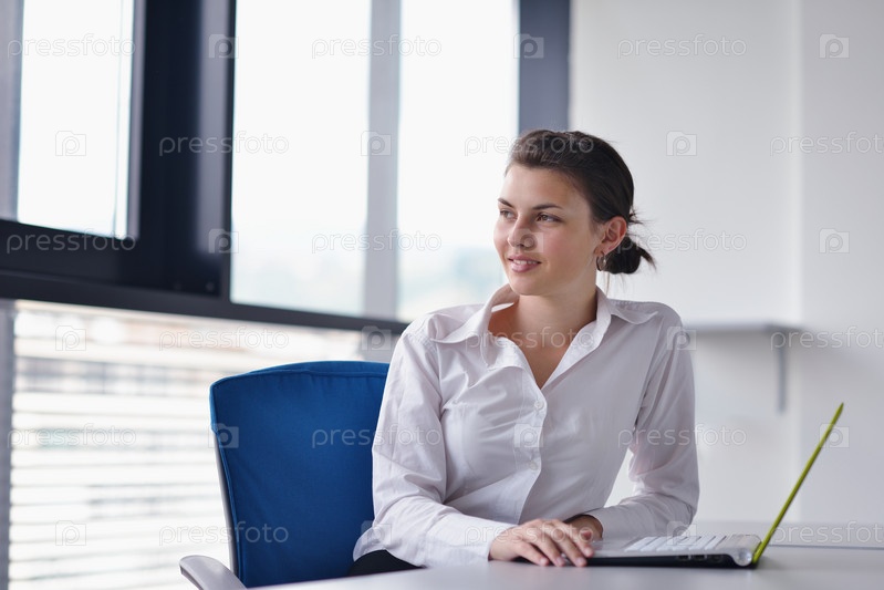 Молодая красивая бизнес-леди с ноутбуком в офисе
