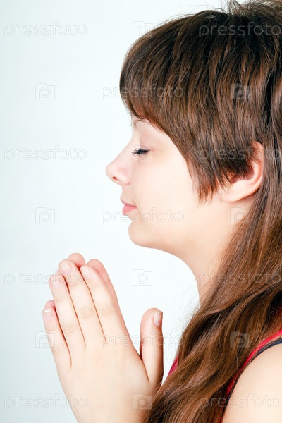 Девушка сложила руки в молитве