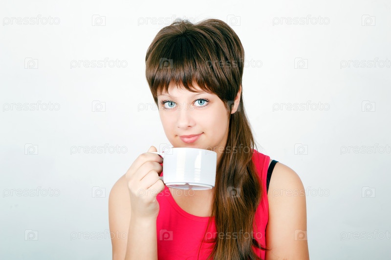 Девушка с большой белой кружкой