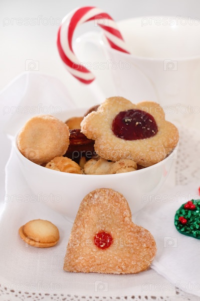 Рождественское печенье с вареньем на белом фоне