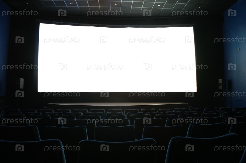 Экран в темном кинотеатре