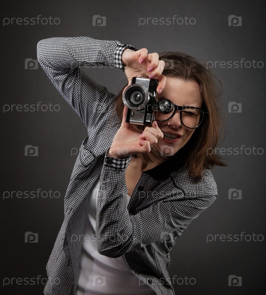 Портрет девушки со старой фотокамерой