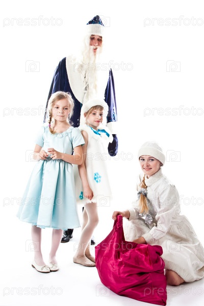 Дед Мороз, снегурочка и маленькие красивые девочки