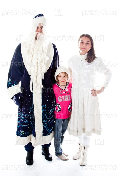 Дед Мороз, снегурочка и маленькие красивые девочки