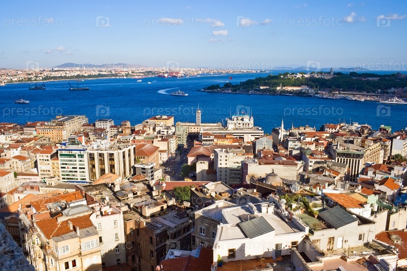 Вид с башни Галата в Босфор, Стамбул, Турция