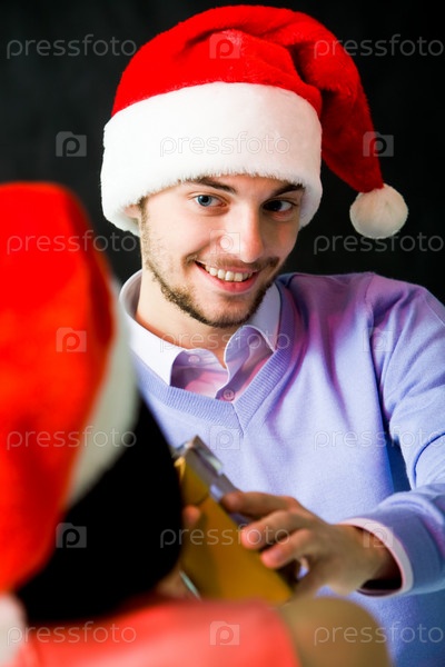 Изображение счастливого мужчины, дающего подарок на вечеринке