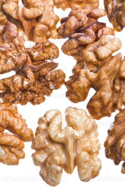 Очищенные грецкие орехи, изолированные на белом фоне