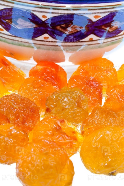 Сушеные желто-коричневые яблоки и азиатское блюдо крупным планом