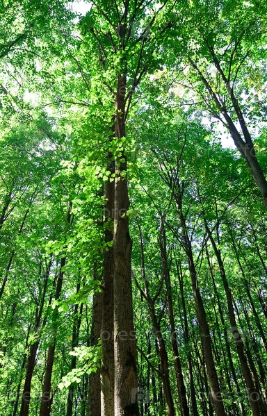 Зеленый лес, высокие деревья