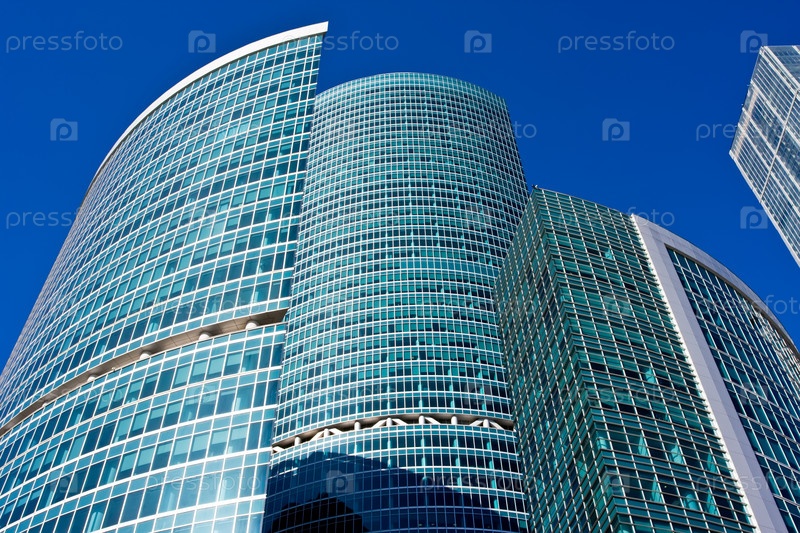Современные небоскребы под голубым небом