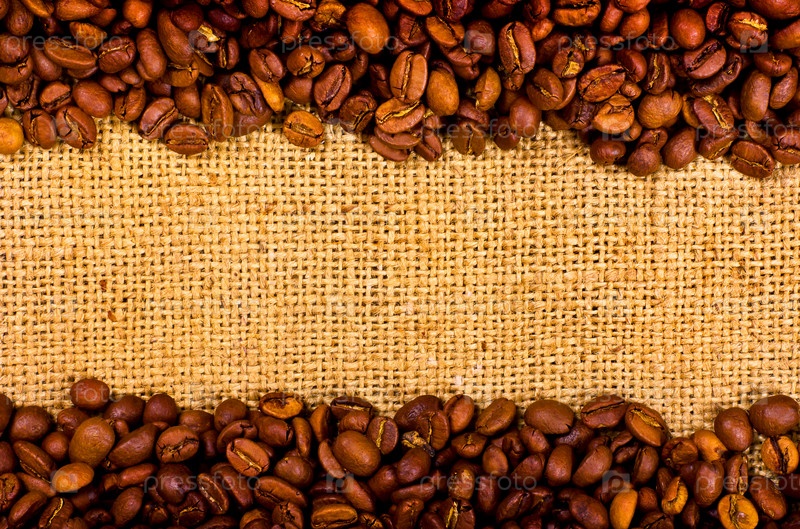 Кофейные зерна на фоне мешковины