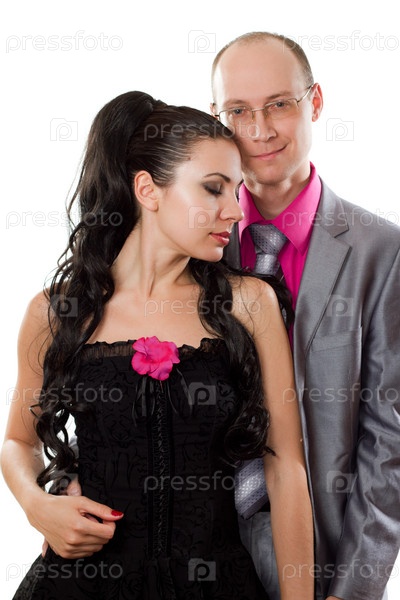 Влюбленные муж и жена на белом фоне
