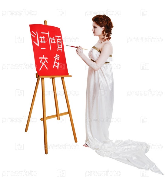 Девушка в греческом костюме рисует