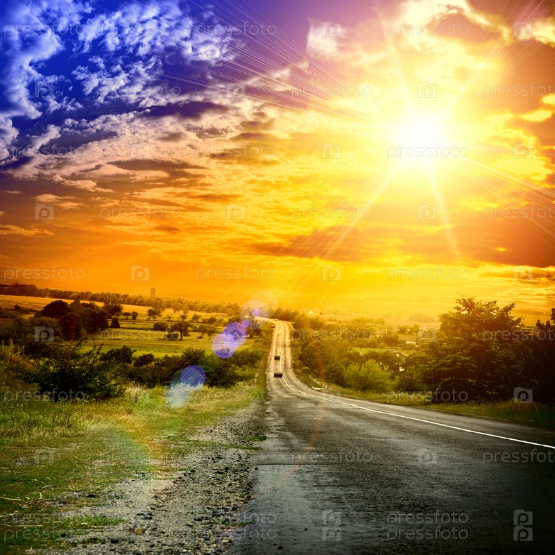 Асфальтовая дорога и красный восход